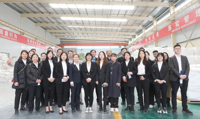 在理論知識學(xué)習(xí)后,為加深對產(chǎn)品生產(chǎn)線與產(chǎn)品知識的深入了解,行政人事部組織新員工驅(qū)車前往工廠進(jìn)行了實(shí)地學(xué)習(xí)。在不定形耐火材料生產(chǎn)車間,白總首先對新員工的到來表示了熱烈的歡迎,并介紹了工廠的生產(chǎn)模式與制度。程廠長就不定形耐火澆注料與可塑料的生產(chǎn)流程進(jìn)行了詳細(xì)的講解,從原料的采購到碎石分級,從化學(xué)物理性質(zhì)分析,到樣品制作與抽檢,及其施工方式與鑒別方式一一進(jìn)行了詳細(xì)介紹。